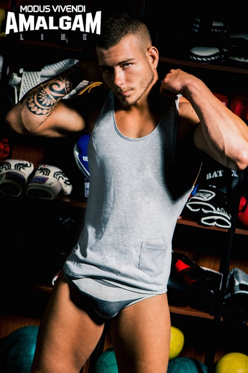 The campaign of the Amalgam line was photographed in Club Realbox gym in Tenerife, by talented Adrian C. Martin. The model is Christopher Garcia, current European champion of Brazilian Jiu Jitsu. The shots are fresh and strong, combining action with sleek style and the right amount of sexy, a great interpretation of this outstanding new line. The arousing backstage video was filmed by Sergio Del Pino.